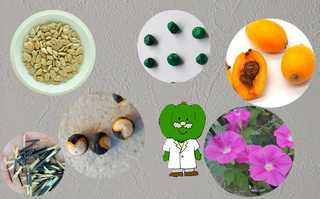 みかんの種、りんごの種、キュウリの種、お花の種。どんな大きさかな?どんな形かな?